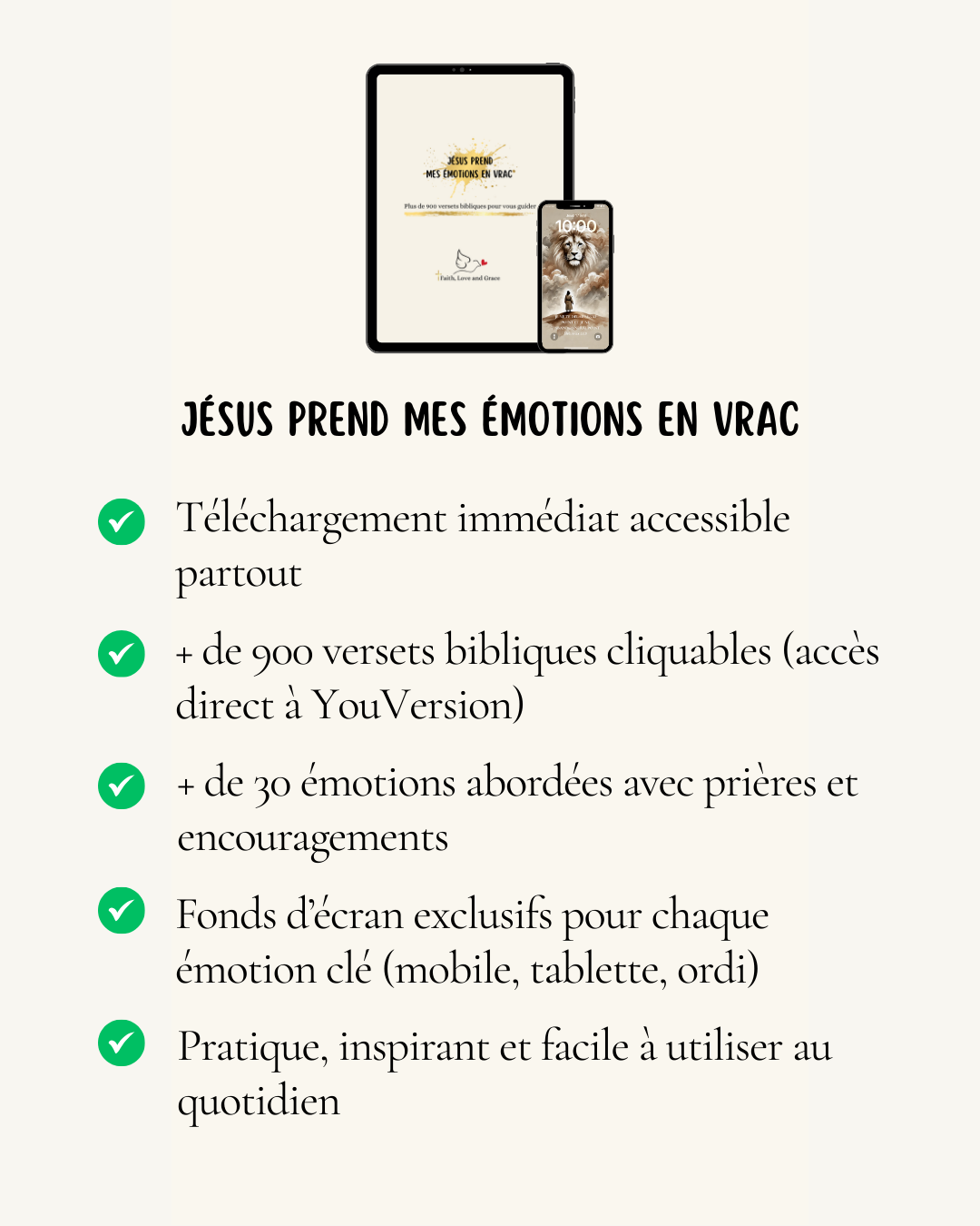Et ainsi est né Faith, Love and Grace. Un projet guidé par Lui, pas à pas. Ce livre en est l’un des fruits. Je prie pour qu’il soit une bénédiction pour chacun de vous. Qu’il vous aide à vous reconnecter à Dieu, à déposer vos émotions, et à marcher avec Lui.